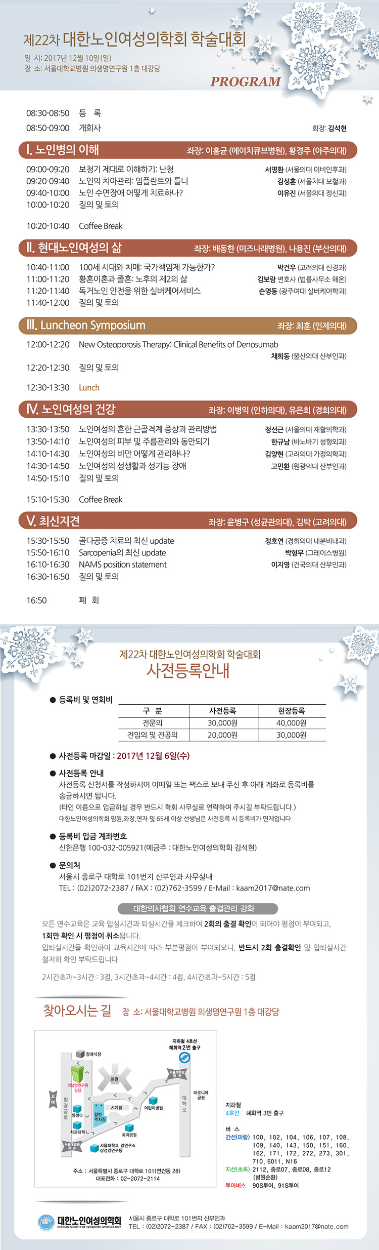 제 22차 대한노인여성의학회 추계학술대회 페이지 정보 작성자 대한노인여성의학회 댓글 0건 조회 1,204회 작성일 22-05-19 15:08 목록 본문 2017년 12월 10일 (일) 서울대학교병원 의생명연구원 1층 대강당 이전글제 23차 대한노화방지의학회 춘계학술대회 22.05.19 다음글제 21차 대한노인여성의학회 춘계학술대회 22.05.19 댓글 0 댓글목록 등록된 댓글이 없습니다.