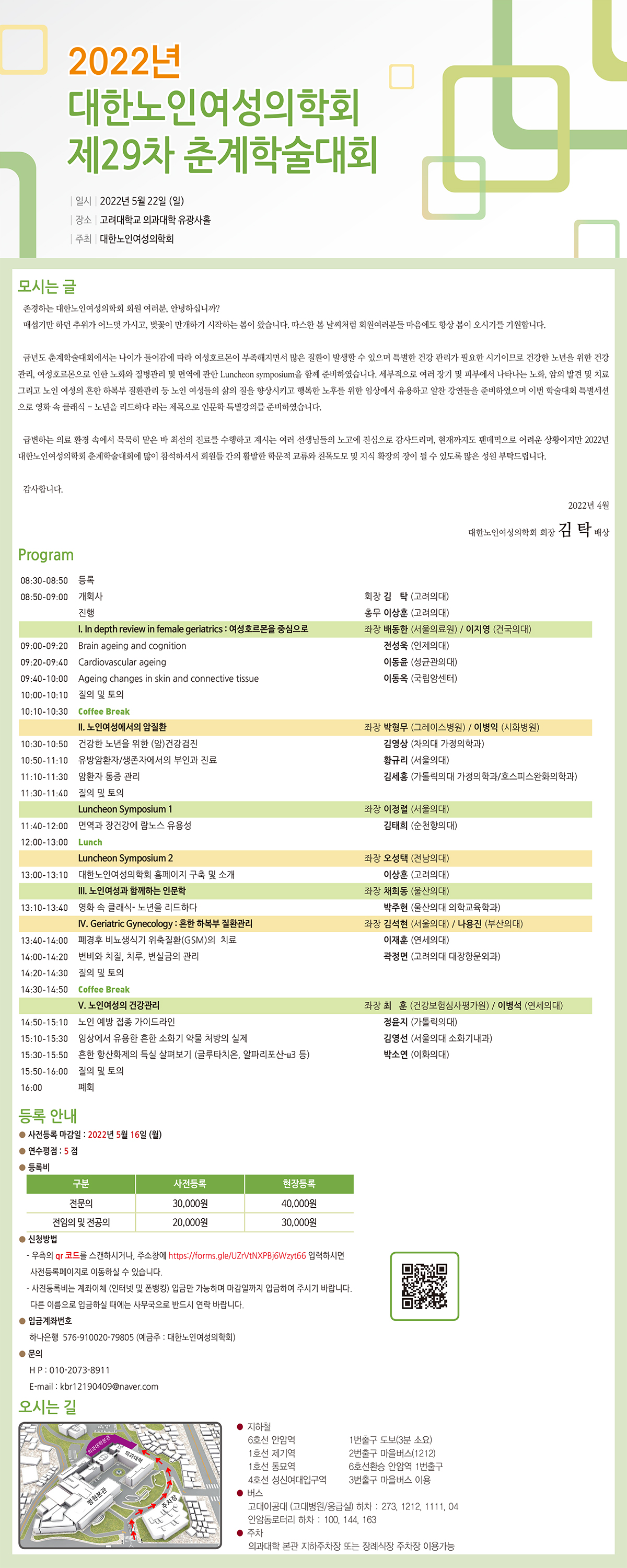 제 29차 대한노인여성의학회 춘계학술대회 페이지 정보 작성자 대한노인여성의학회 댓글 0건 조회 1,814회 작성일 22-05-19 15:09 목록 본문 2022년 5월 22일 (일) 고려대학교 유광사홀 이전글제 30차 대한노인여성의학회 추계학술대회 23.05.09 다음글제 28차 대한노인여성의학회 추계학술대회 22.05.19 댓글 0 댓글목록 등록된 댓글이 없습니다.